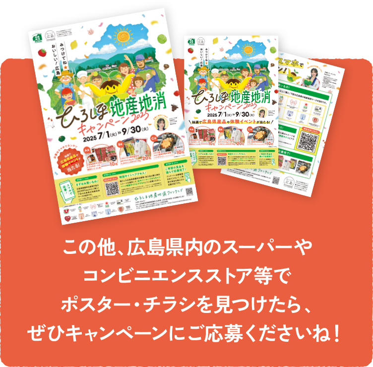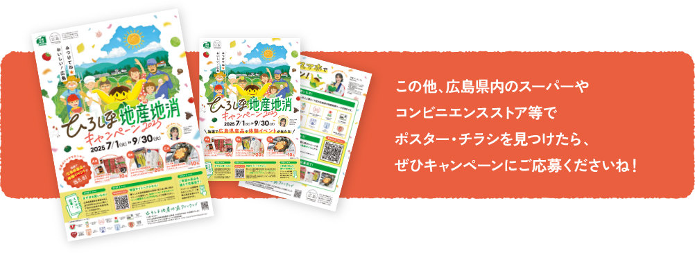 広島県産農林水産物を300円(税込)以上ご購入!下記の広島県の地産地消マークが目印です。
